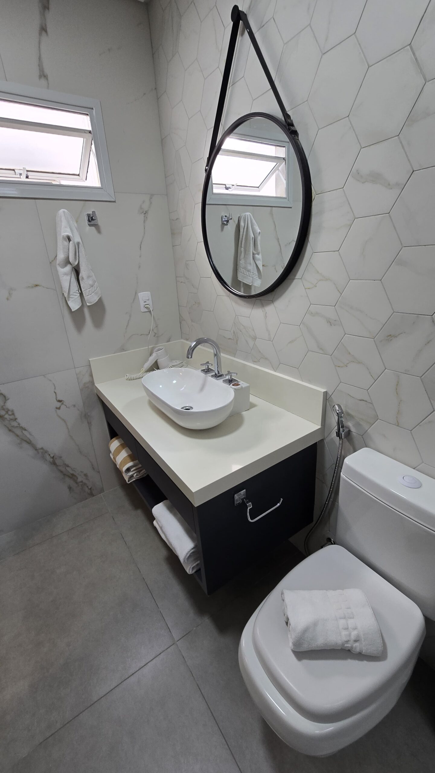 Frigobar, micro-ondas, pia e utensílios para sua conveniência.